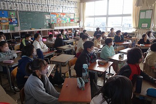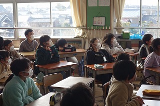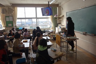 5年2組の総合的な学習は、ハッピートークでお世話になるアーチェリーの武藤選手の紹介が映像で行われました。