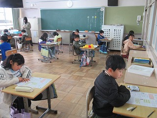 2年1組は算数の時間でした。みんなテストに取り組んでいました。難しい問題も間違えてしまった問題も復習して覚え直せば大丈夫です。2年生の内容は2年生の内に覚えていきましょう。
