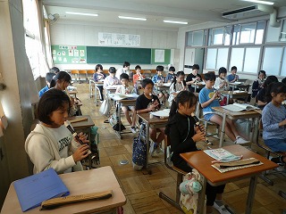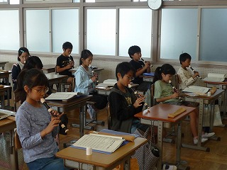 リコーダーで「オーラリー」や「もみじ」を演奏しました。