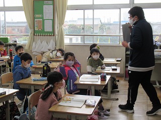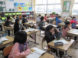 1年2組では、国語の時間、作文について、先生から説明を聞いていました。