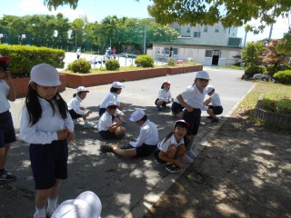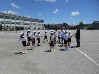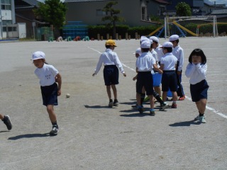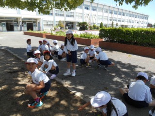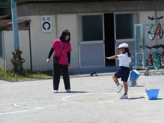 外と中の種目を、1時間ずつ行っていました。いい記録が出るといいです。待っているクラスは、日陰で落ち着いて座っていました。