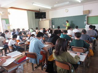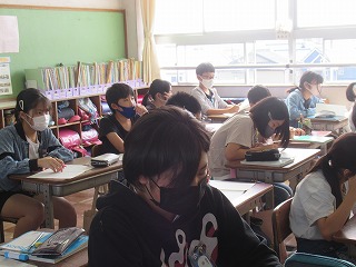 6年1組では、算数の授業が行われていました。比の問題プリントの答えあわせをしていました。しっかり内容を理解してくださいね。