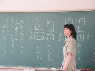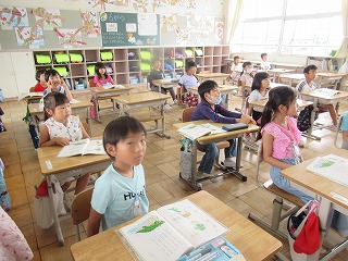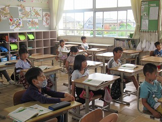 1年1組では、国語の時間、ことばのひろばを使い、学習が進められるところでした。