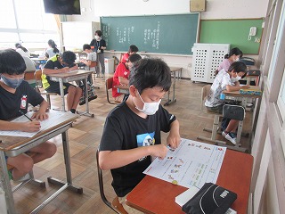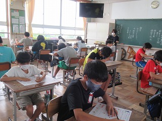 6年1組では、外国語の時間、テストを行っていました。
