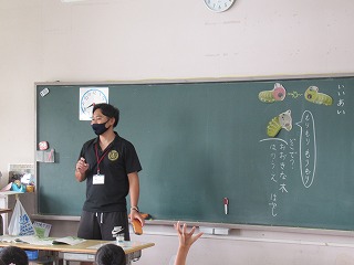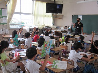 1年1組では、国語の授業が行われていました。きちんと挙手をして、発言しようとする姿が立派でした。