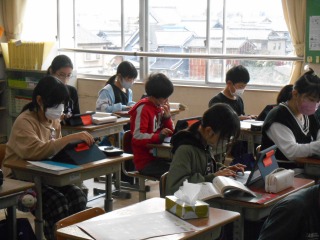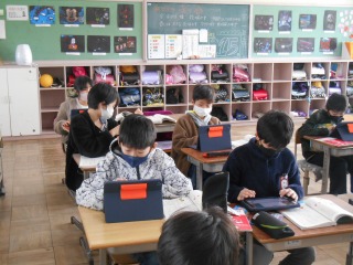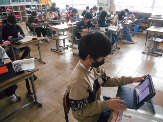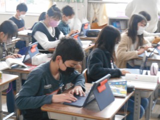 「みんなに提案したいこと」発表原稿を、タブレットを使って作文していました。