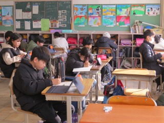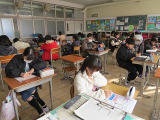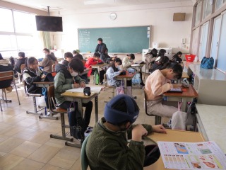 「人のたんじょう」のテストに取り組んでいました。終わった人は、タブレットで学習をしていました。