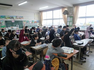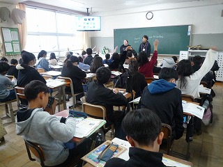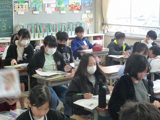 生き物の暮らす場所とかかえている問題を英語で聞き、問題を解いていました。
