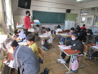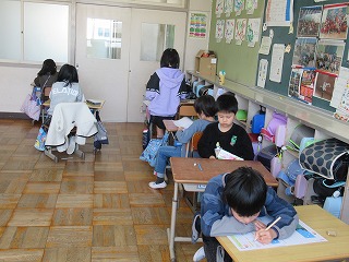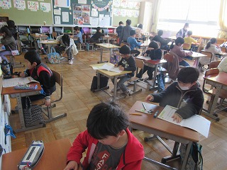2年2組はテストに取り組んでいました。テストが終わった児童から、書写ノートに取り組んでいました。