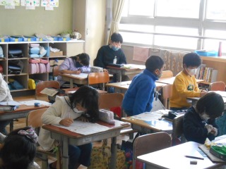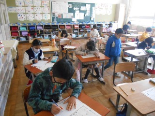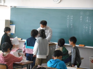 クラスの子に表彰状を作っていました。内容があっているか、担任の先生に確認してもらっていました。