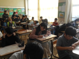 先週測った自分の歩幅を使って距離を求める問題に取り組んでいました。平均を求め、距離を概算していました。