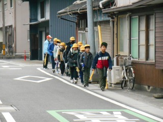 新たに南門から登下校する班が増えましたが、しっかりと列を作り、安全に登校しています。