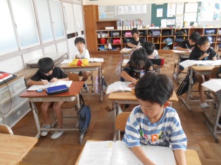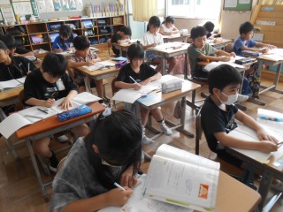 復習のページに取り組んでいました。ひっ算など、便利な方法も使いながら解答していました。