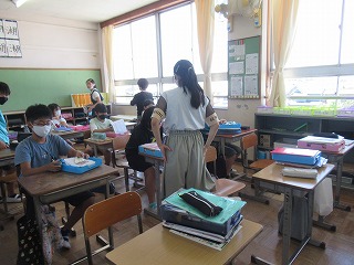 6年1組では、自分の机の中やロッカーの中の整理整頓をしていました。