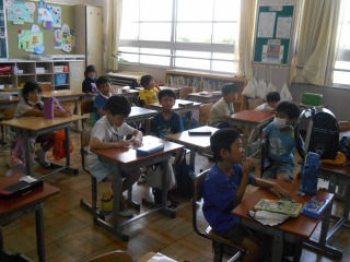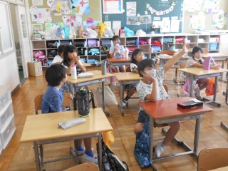健康観察をしていました。暑いので、体調管理がとても大切です。