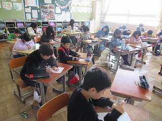 2年2組は算数の時間でした。算数のプリント学習に取り組んでいました。2年生の学習内容をしっかり理解できたかな?