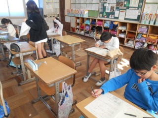 まとめのプリントに取り組んでいました。見直しをして、先生の確認に向かっていました。