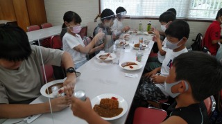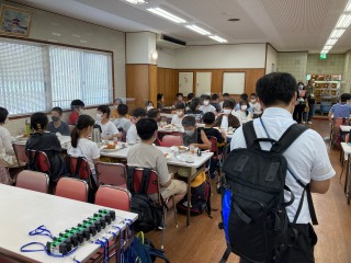 6年生は、班別行動を終え、昼食会場の梅山堂に集まってきました。ずいぶん歩いた後なので、おいしく昼食が食べられますね。