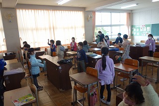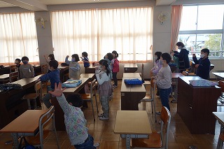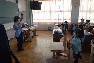 1年2組の音楽は、軽快な音楽に合わせて、体を動かしました。