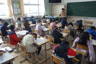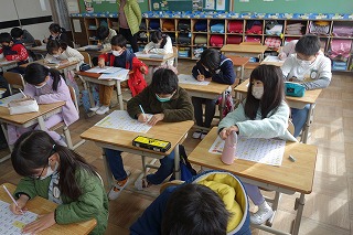 2年2組の国語は、漢字テストでした。今まで学んだ漢字を、丁寧に書きました。