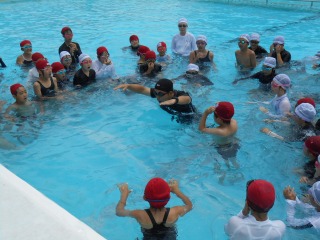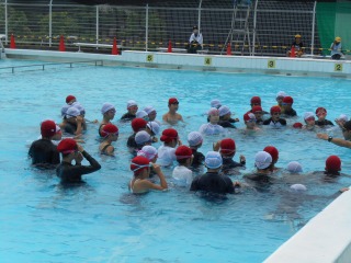 潜って、先生が水中で何をしたのか当てるゲームをしていました。