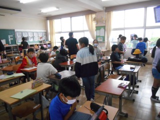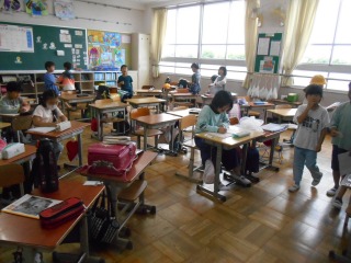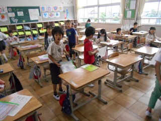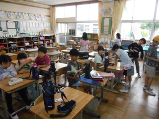 1年生の準備が段々と早くなってきました。頼もしいです。明日からはお休みなので、いっぱいお話してほしいです。