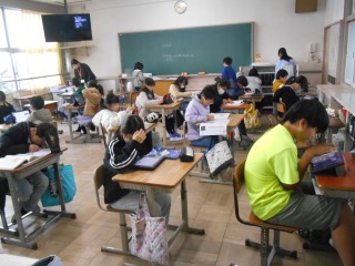 テストを行っていました。終わった子は、タブレットなどを使って自習を静かにしていました。