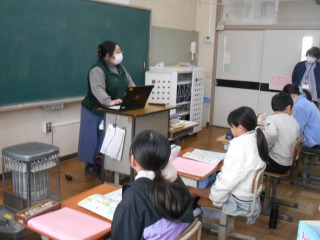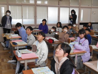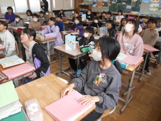 世界各国の挨拶の仕方について学習していました。動画からの音声を聞き、発音していました。