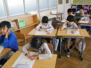 時刻と時間の問題を解いていました。しっかりと読みながら、問題に取り組んでいました。