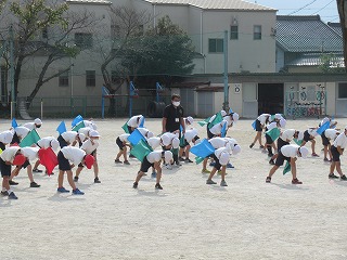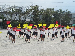 3・4年生がミワリンピックの練習を行っていました。だんだん自信がついて、しっかり旗をふることができてきています。楽しみですね。