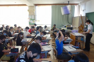 6年2組の国語は、『「鳥獣戯画」を読む』の学習でした。教育実習生の先生が授業をしてくださいました。