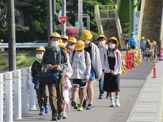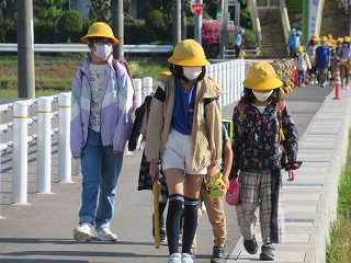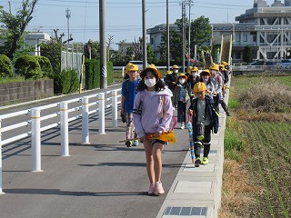 北門の通学班の登校の様子です。