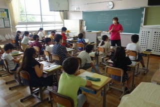 4年2組の外国語では、夏休みプリントが配付されました。そのプリントの説明を聞きました。