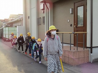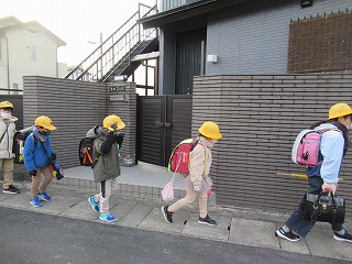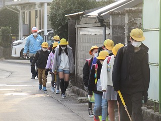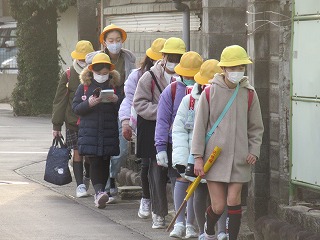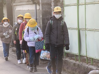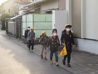 東門の通学班の登校の様子です。