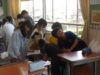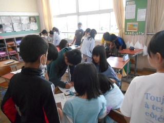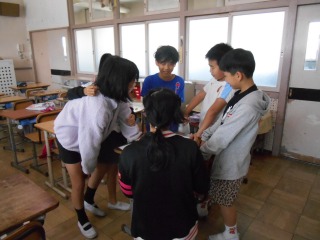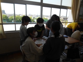 野外活動の準備をしていました。班に分かれて、誰が何を担当するか、相談しているところでした。