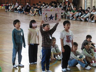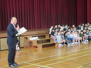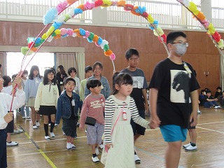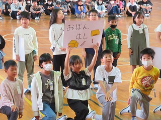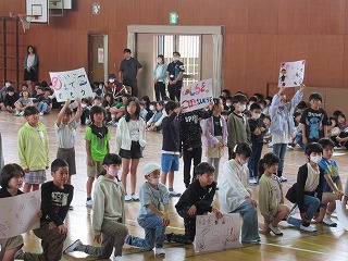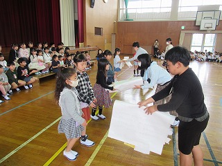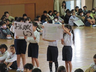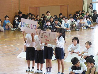 1年生が入学してから早10日が過ぎました。今日、1年生を迎える会が行われました。1年生は6年生と一緒に入場し、2年生から6年生のお兄さん・お姉さんが学校の説明をしてくれるのを楽しそうに見ておりました。