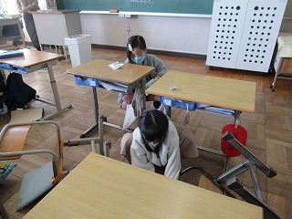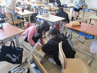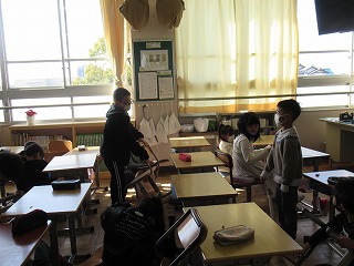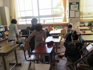 2年1組では、自分の机や椅子のほこり取りをしていました。1年間、お世話になったものです。きれいにしてくださいね。