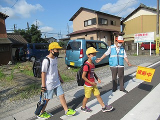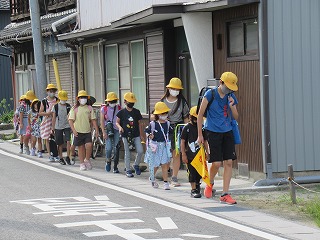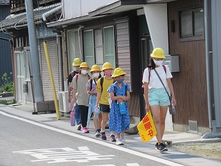 南門の通学班のようすです。今日も、暑い日です。熱中症に気をつけて、過ごします。