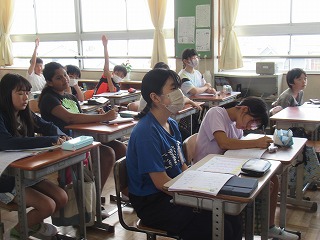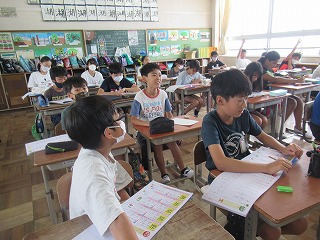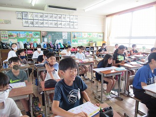 6年2組では、国語の授業が行われていました。文章作りを行っていました。楽しい文章がたくさん出ていました。