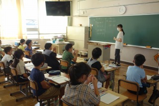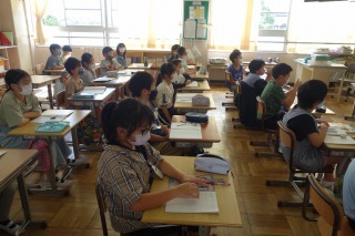 4年1組の算数は、「わり算のせいしつを使って、わり算をしよう」の学習でした。わり算の性質を使って、簡単で分かりやすい計算方法をみんなで考えました。