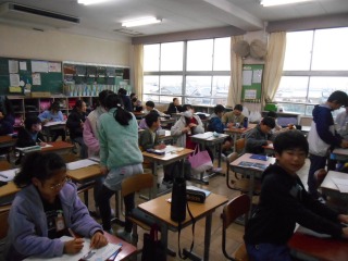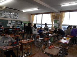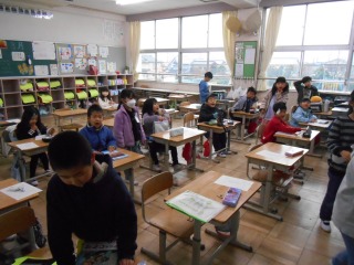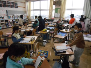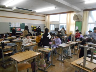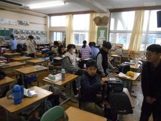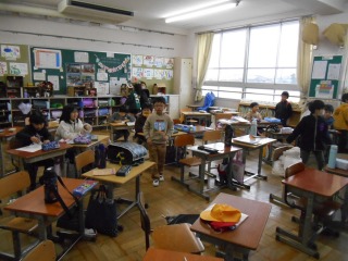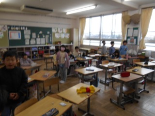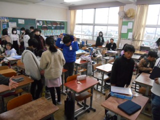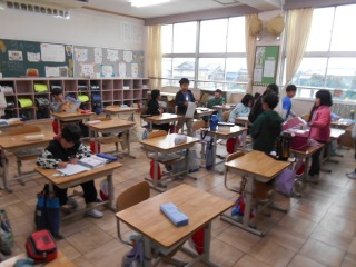 今朝は、雨の中登校してきました。濡れた物を拭いたり、靴下を履き替えたりしながら一日の準備をしていました。