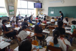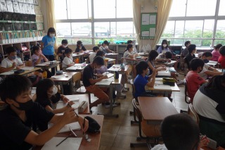 5年2組の算数は、図形の学習でした。合同な図形に関する問題を解きました。
