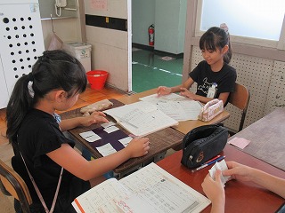 3年1組では、国語の時間、漢字のへんとつくりに分けたカードづくりを行っていました。グループで楽しく活動していました。