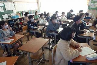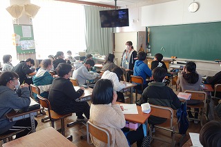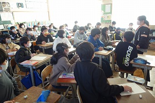 6年2組の学級活動は、中学校の生活についての動画を見ました。動画の説明を見て、疑問に思った質問などをプリントに書きました。