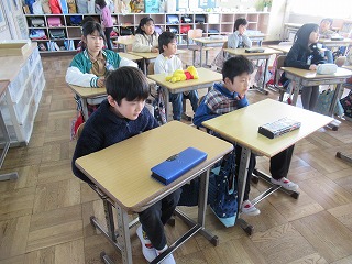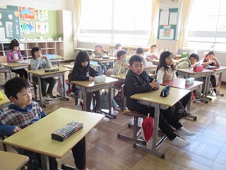 2年1組では、朝の会が行われていました。
