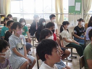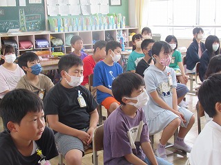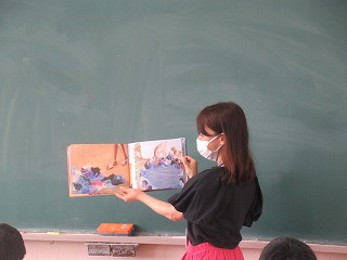 5年1組では、ボランティアさんによる読み聞かせを行っていただいていました。子どもたちは、聞き入っていました。