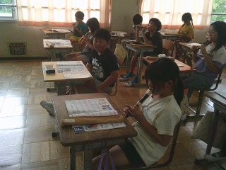 「ドの音をひびかせよう」という単元に取り組んでいました。リコーダーを使って「河はよんでる」という曲を演奏していました。