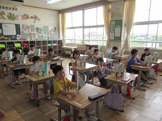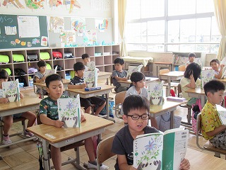 1年2組では、国語の時間、音読を行っていました。列ごとに上手に読んでいました。