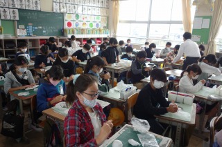 5年1組では、立体作品づくりに取りかかりました。紙粘土を使った作品づくりです。どんな作品ができあがるのか、楽しみですね。
