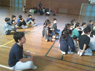 ミワリンピックの種目の説明でした。どのような協議を行うか、説明を聞きながらワクワクしている子どもたちの顔が見られました。